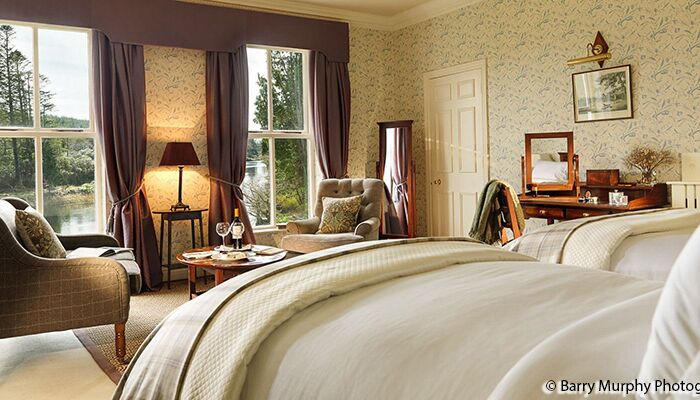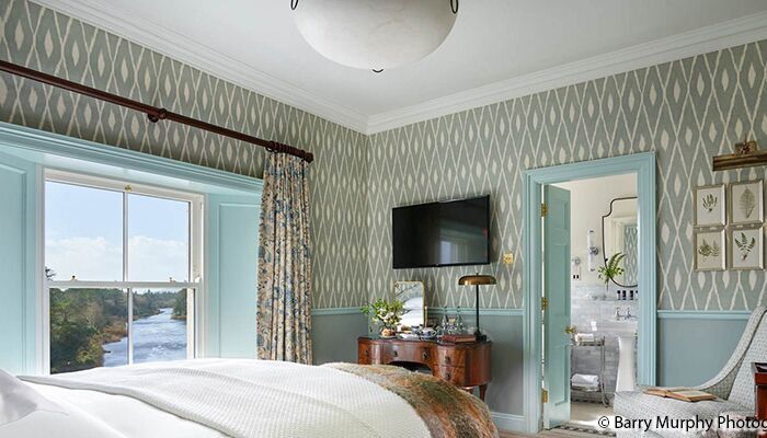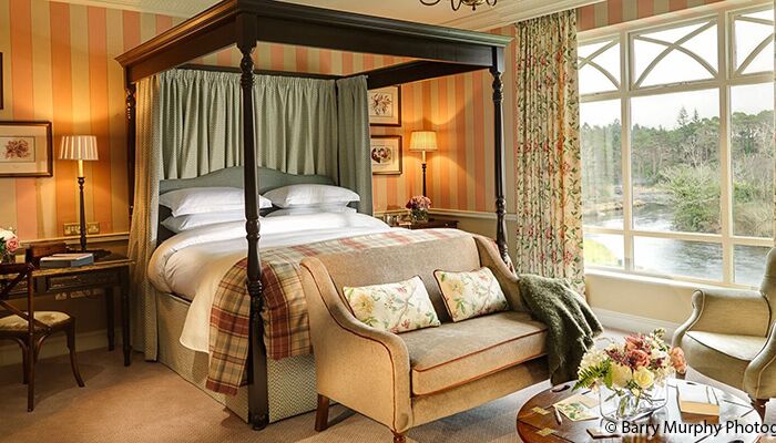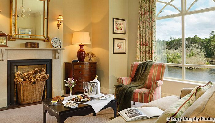 Entspannen Sie sich während Ihres Aufenthalts in Ihrem wunderschön eingerichteten Schlafzimmer oder Ihrer Suite mit herrlicher Aussicht, wachen Sie mit dem Rauschen des Flusses auf, der an Ihrem Fenster vorbeirauscht, bevor Sie Ihr Frühstück im eleganten Restaurant genießen. Das Restaurant wurde im November 2021 vom Food & Wine Magazine zum besten Hotelrestaurant Irlands gewählt und verwendet die besten Produkte aus der Region und vom Weingut.