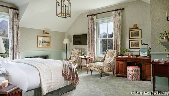 Diese schönen Zimmer befinden sich im ursprünglichen Haus aus dem 18. Jahrhundert. Sie sind alle individuell dekoriert und spiegeln die Farbtöne der Landschaft von Connemara wider. Da sie sich im ursprünglichen Haus befinden, unterscheiden sie sich in Größe und Aussehen. In unseren Classic Riverside-Zimmern finden maximal zwei Personen Platz. Ein Zustell- oder Kinderbett ist nicht möglich.