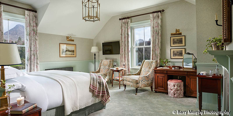 Ballynahinch Castle Hotel Irland Schlosshotel Connemara Luxushotel Galway Hochzeit Donegal Luxussuite mit Gourmet Restaurant ein Paradies für Angler