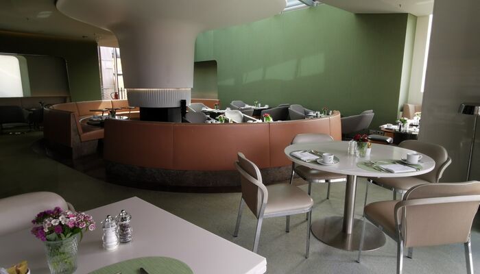 Hoch oben, über den Dächern Münchens, ist das Blue Spa gleichsam die Krönung des Hotels. Auf 1.300 qm hat Stararchitektin Andrée Putman auf vier Etagen ein einzigartiges Wellness-Refugium für Körper und Geist geschaffen: