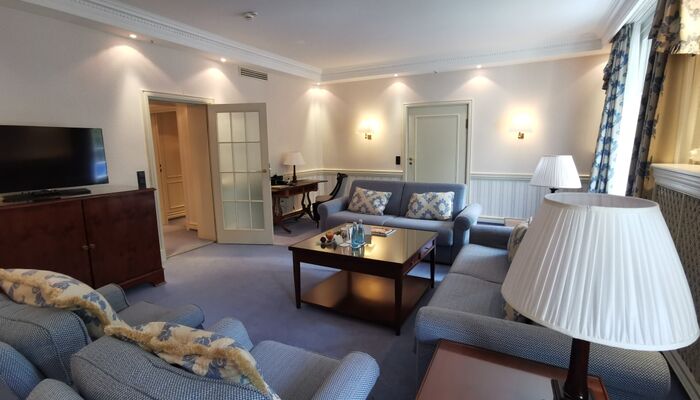 Die Suite kann individuell mit weiteren Zimmern zu einer Two- oder Three-Bedroom-Suite verbunden werden. Auf Wunsch steht Ihnen die gesamte vierte Etage, der Presidential Floor - eine der größten Suiten Europas mit insgesamt neun Zimmern und 584,55 qm - zur Verfügung.