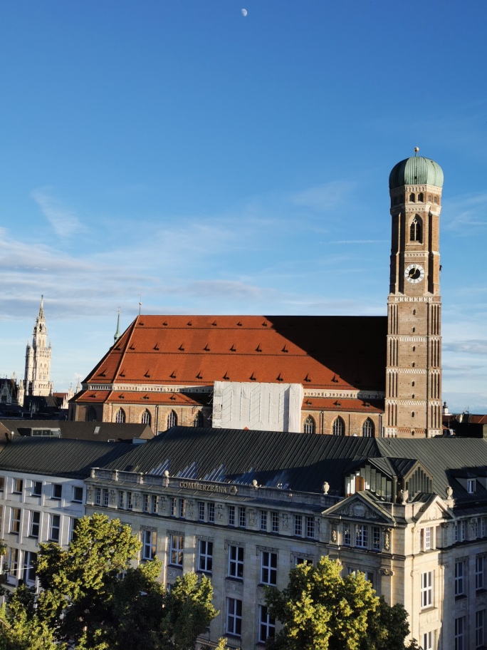 Das großzügige Marmorbad mit exklusiver Ausstattung sowie ein Arbeits- und Schlafraum mit begehbarem Kleiderschrank befinden sich im Erdgeschoss der weitläufigen Suite. Vom großzügigen Wohnbereich gelangt man über eine Wendeltreppe zum verglasten Galerieschlafzimmer mit Blick auf die Wahrzeichen Münchens.
