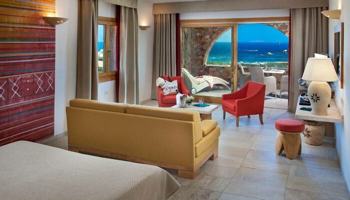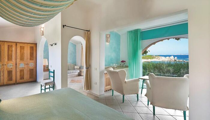 Die fantastische Lage, nur wenige Meter von herrlichen Buchten mit weißem Sandstrand und bizarren, von der Zeit geformten Felsen, entfernt, zählt zu den schönsten auf Sardinien. In der großzügigen weitläufigen Anlage hat man überall seine Privatsphäre und kann die zahlreichen Buchten schnell zu Fuß erreichen. Die romantischen Zimmer mit Panoramaterrassen und die angenehme Atmosphäre des SPA , zusammen mit dem hervorragenden Service, lassen das Resort zu einer Oase der Entspannung und Ruhe für Paare werden. Das Resort ist aber auch ideal für Familien geeignet. Weitläufige Grünflächen, ein großer, gut ausgestatteter Mini-Club und das herrliche Kinderschwimmbad sind ein Paradies für unsere kleinen Gäste. Neben dem türkisblauen Meer und der unglaublich schönen Aussicht auf die Inseln rundet das Meerwasserschwimmbad direkt am Meer und das berühmte Thalasso und SPA Center das Angebot perfekt ab. Nach dem Abendessen erwarten Sie auf der Piazza des Resorts Livemusik und an manchen Tagen Abendveranstaltungen.