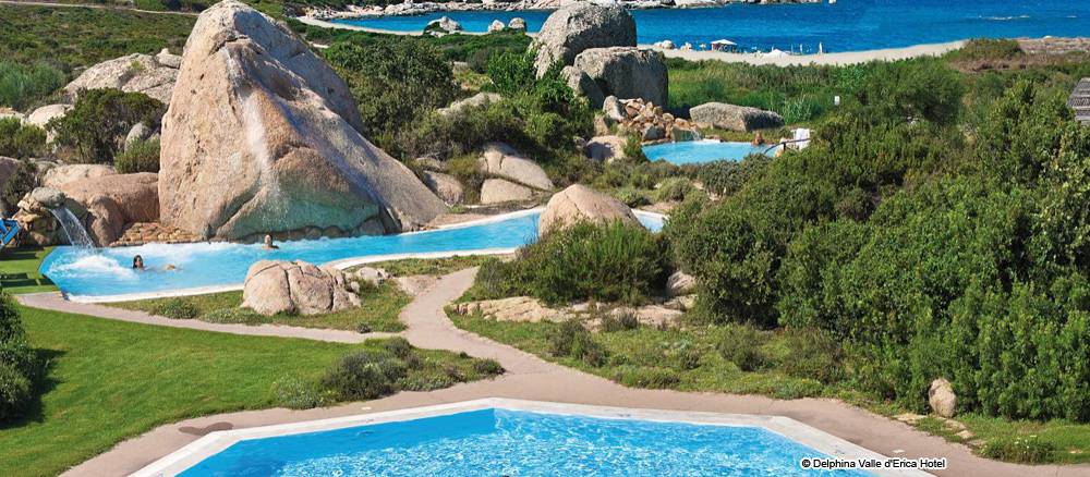 Das Valle dell`Erica liegt nördlich von Palau an der Grenze zum Nationalpark des schutzgebiets des La-Maddalena-Archipels und genau gegenüber der unbewohnten, faszinierenden Insel Spargi. Nur 4 km entfernt, liegt der schöne Ort Porto Pozzo mit kleinem Yachthafen und Geschäften. Zum bekannten Urlaubsort Santa Teresa di Gallura an der Meerenge von Bonifacio sind es nur 12 km. Der erste Teil des Valle dell`Erica, dem ersten Resort auf Sardinien, wurde bereits 1958 von dem Eigentümer des Tals erbaut (als man noch wenige Meter vom Meer entfernt bauen konnte), einem Pionier in der Geschichte des Fremdenverkehrs in Sardinien. Aufgrund der besonderen Reize dieses Tals und der Bauqualität, für die das Valle dell`Erica eine Auszeichnung vom italienischen Staatspräsidenten erhielt, war es in den 60ziger Jahren absolut „IN“ und zahlreiche Berühmtheiten, Prinzen und Könige verbrachten hier ihren Urlaub. Im Jahr 2005 wurde das Resort von Delphina von Grund auf renoviert. Dabei wurde besonders darauf geachtet, dass das Resort eine Einheit mit der wunderbaren Natur, bildet und dass der ursprüngliche Baustil des Gründers dieser Anlage bewahrt bleibt. Das Resort wurde zusätzlich mit jedem nur erdenklichen Komfort ausgestattet, um unseren Gästen einen exklusiven Urlaub inmitten einer einzigartigen Landschaft zu bieten.