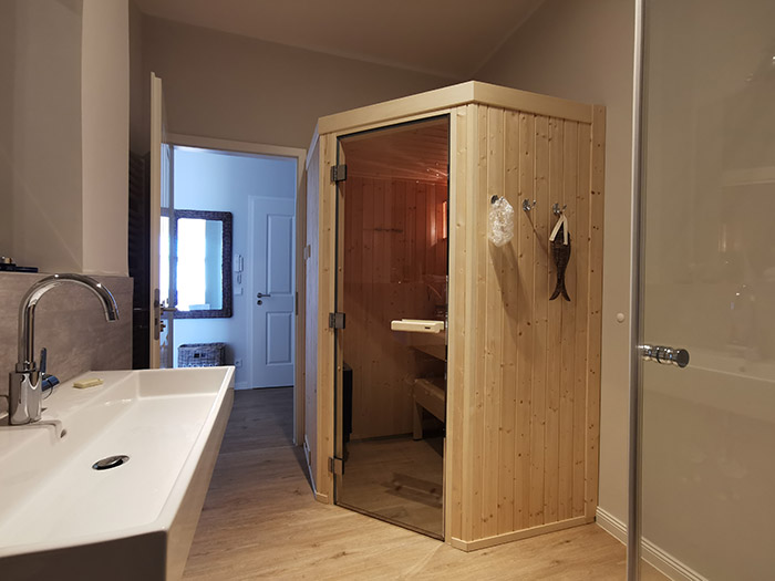 69m², 3 Zimmer, 4 Personen, Balkon, seitlicher Hafenblick, Sauna, Gäste WC