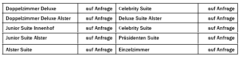 Alle 156 Zimmer und Suiten und Bäder wurden 2009 mit Bedacht und Liebe zum Detail renoviert und mit Klimaanlage ausgestattet, um auch den höchsten und anspruchsvollsten Standards zu genügen. Die neuen Gästezimmer zeigen sich in einem neuen und zeitgemäßen Gewand mit makelloser Detailfülle, feiner Anmut und zarter Eleganz. Die meisten unserer Unterkünfte in Hamburg verfügen über einen atemberaubenden Blick auf die Binnenalster.