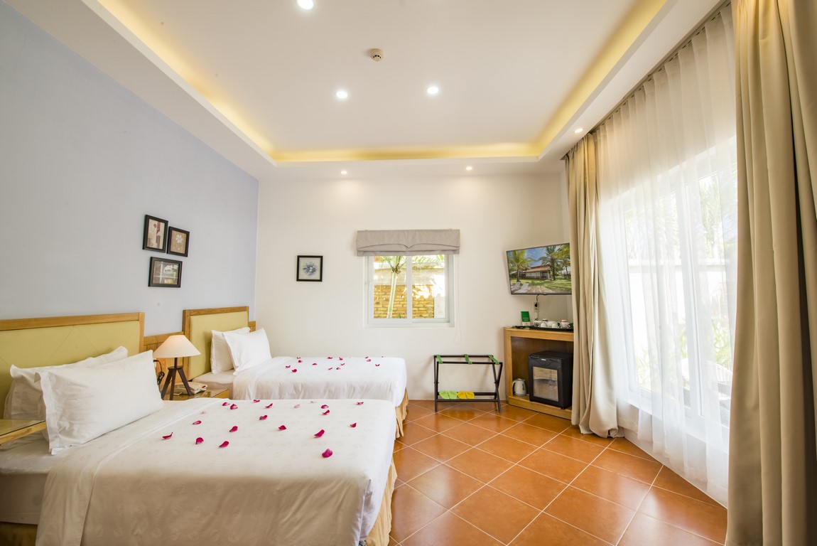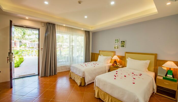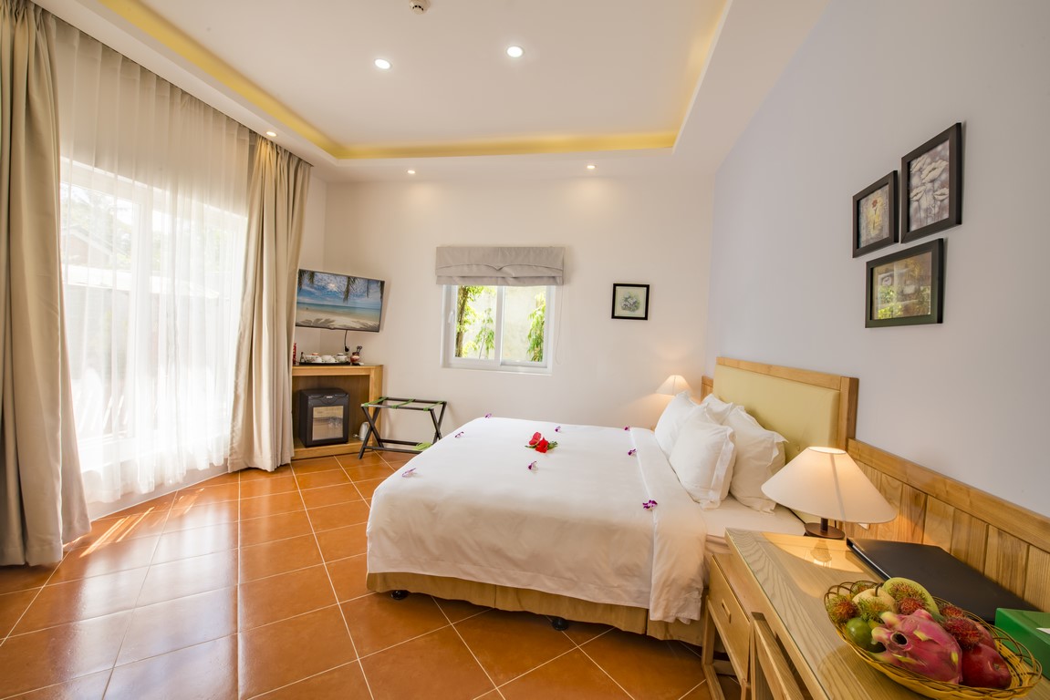 Das Resort verfügt über 100 Zimmer in zwei Bereichen, die separat als Beach & Spa Abschnitt und Green Villa Abschnitt bekannt sind. Der Strand und die Region ist auch sehr bekannt für seine einmaligen Sonnenuntergänge und den einzige Strand auf der Insel Phu Quoc, um die Sonne über das Meer mit herrlichem Blick zu beobachten. Alle Zimmer sind elegant in einem schönen Bungalow und eigenem Villa Stil perfekt geeignet für diejenigen, die die Schönheit der Natur lieben und eine wirklich entspannende Atmosphäre suchen.