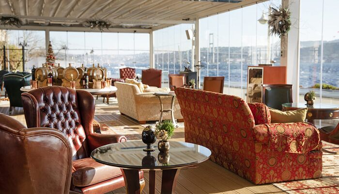 Eingebettet am blauen Bosporus, direkt neben der Lobby, ist unsere ganztägig geöffnete Lounge der perfekte Ort zum Entspannen. Genießen Sie einen Nachmittagskaffee mit Freunden, schlürfen Sie Cocktails und lassen Sie sich unsere berühmte türkische Pide schmecken.