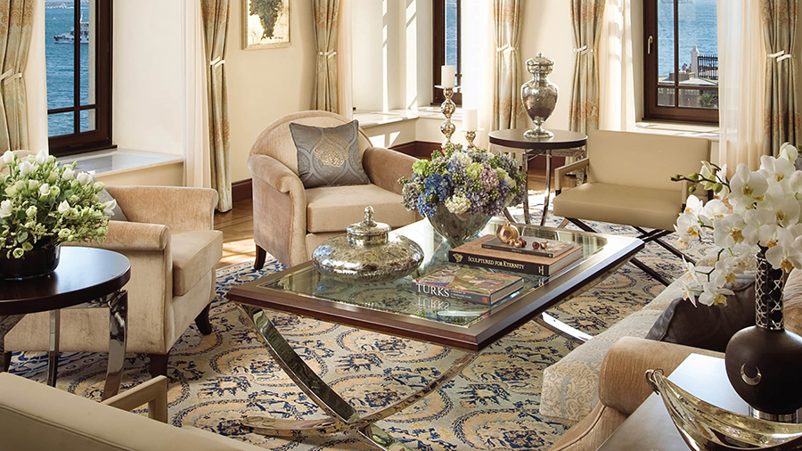 Bewirten Sie Freunde oder entspannen Sie mit der Familie im hohen Wohnzimmer mit Blick auf den Bosporus. Mit drei Schlafzimmern bietet diese Suite viel Platz, um sich während Ihres Aufenthalts in Istanbul wie zu Hause zu fühlen.
