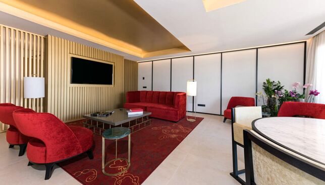 Suite bestehend aus zwei völlig unabhängigen Zimmern mit mehr als 140 m2. Exquisite zeitgenössische und avantgardistische Dekoration, Eingangshalle, großes Wohnzimmer, Hauptschlafzimmer, EXECUTIVE Schlafzimmer mit Bad en suite, Gäste-WC, großes Badezimmer. Premium-Ausstattung, BAR, Minibar, NESPRESSO, Tee-Zubereitungsmöglichkeiten und kostenloses Premium-WI-FI Reservierte Hängematten und exklusiver Service im Poolbereich.