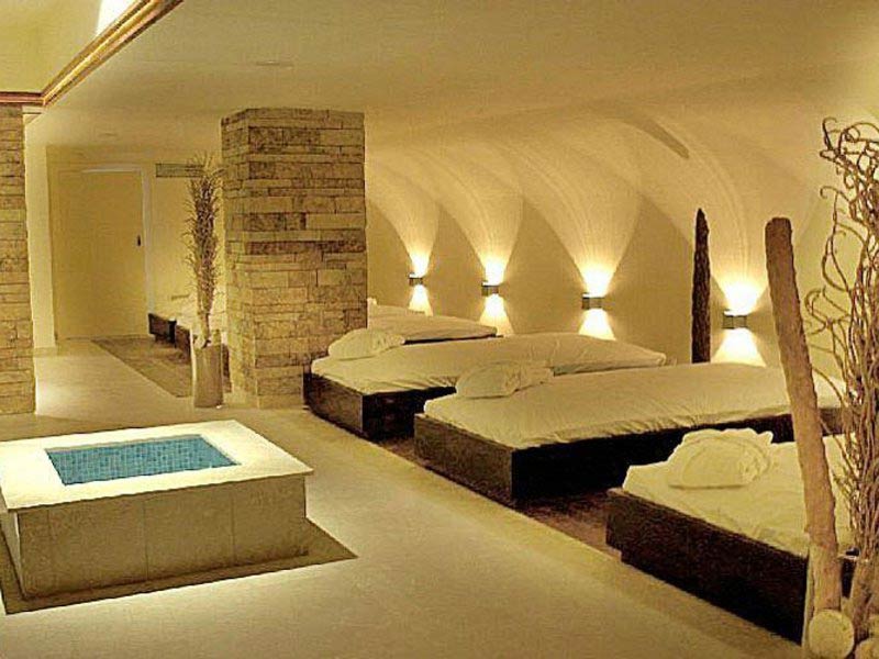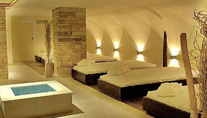 2 Trockensaunen und 2 Dampfbäder, Wasserbetten, Whirlpool, beheizte Liegen, 11 Behandlungskabinen, 1 Behandlungskabine für zwei Personen, Meditationsraum, Friseur und Esteticienne.