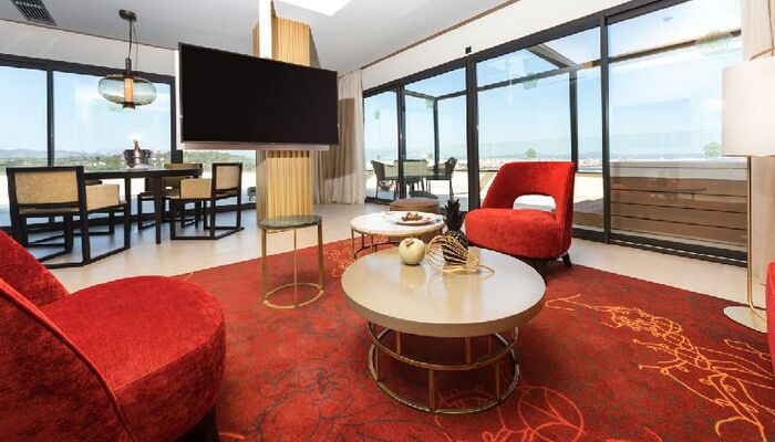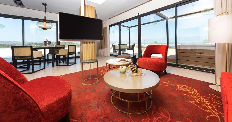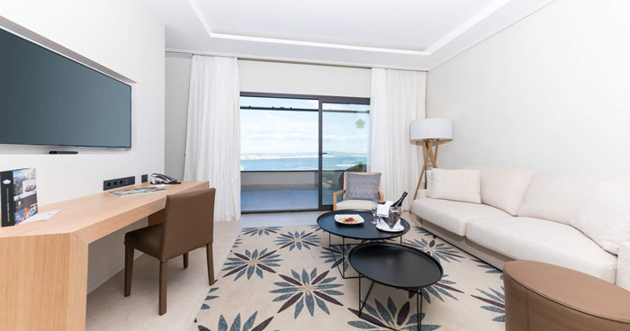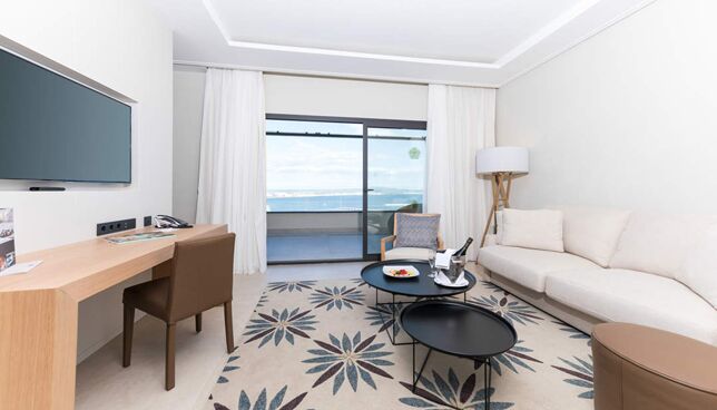 Die Suite ist modern eingerichtet und verfügt über ein Wohnzimmer, ein Schlafzimmer, ein großes Badezimmer, ein eigenes Badezimmer sowie eine Terrasse mit spektakulärem Blick auf die Bucht und eigenem Whirlpool. Premium-Ausstattung, GRAN BAR, NESPRESSO, Teekocher und kostenloses Premium-WI-FI. Reservierte Hängematten und exklusive Serviceleistungen im Poolbereich.