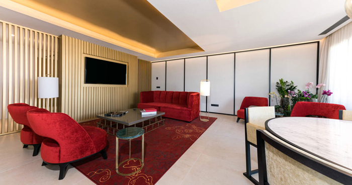 Ein ganz besonderes Flair finden Sie in den 80 bis 100 m² großen Suiten vor. Neben getrennten Schlaf- und Wohnbereich gehört eine zusätzliche Gästetoilette zur Standard-Ausstattung. Ob mit einem Klavierflügel, einer voll ausgestatteten Bar oder einer 500 Meter langen Terrasse mit Rundum-Blick über die Stadt, das Meer und das Hinterland: Jede Suite hat ihren ganz besonderen, eigenen Charakter.