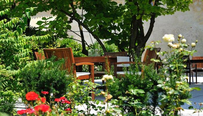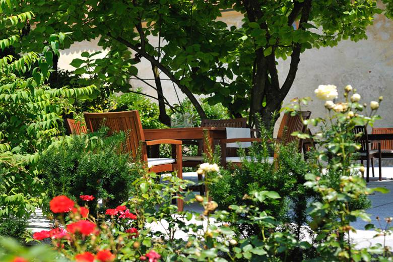 Privatsphäre für kleinere Gesellschaften in besonderen Räumlichkeiten, die Schloss- und Gartenterrasse für größere Gesellschaften. Bewirtung ist möglich: