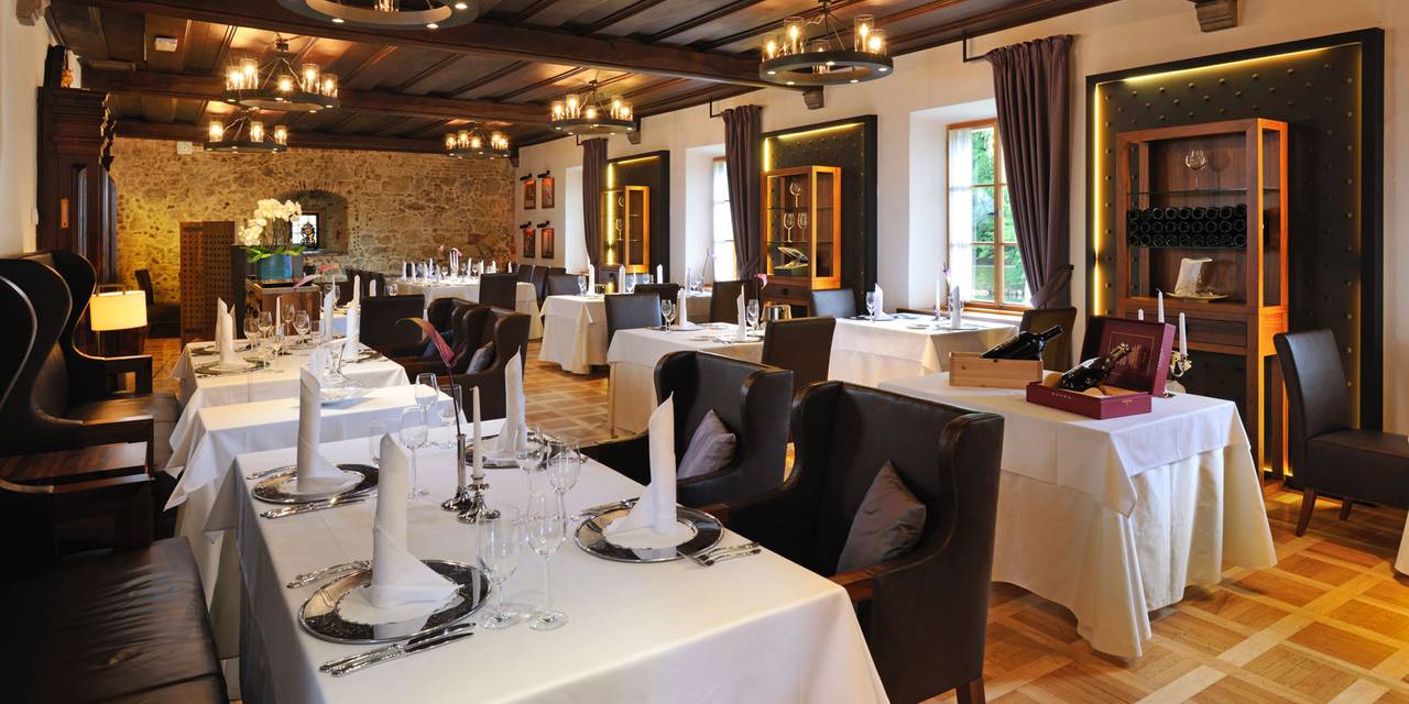 Für Treffen eignen sich ebenso das Schlossrestaurant Grad, das Jagdzimmer oder die Schlossterrasse. Größere ebenso modern ausgestattete Räumlichkeiten befinden sich im nahegelegenen Hotel Sport.