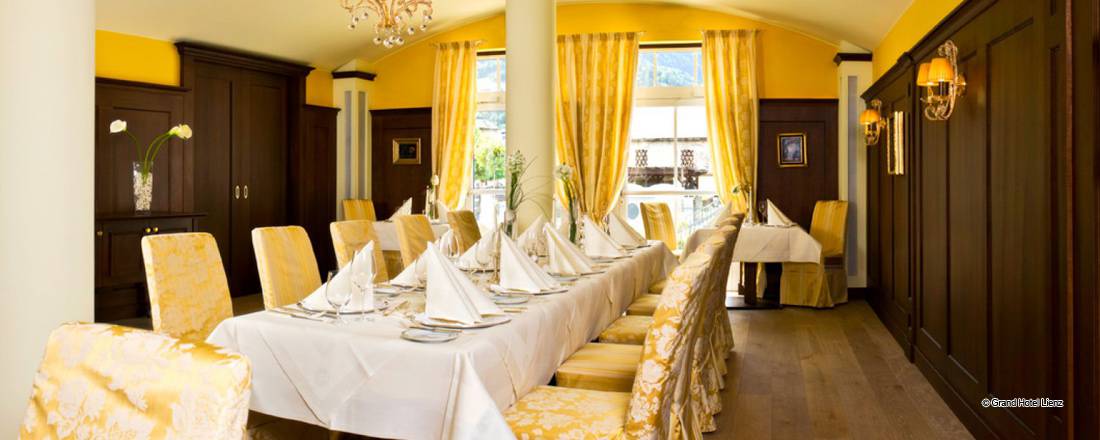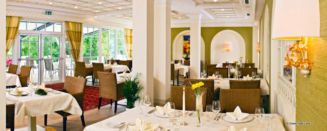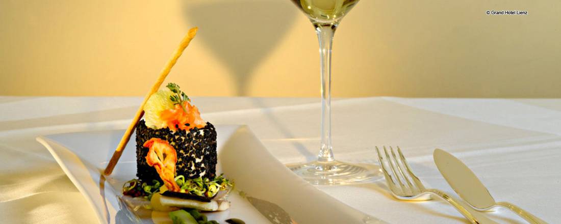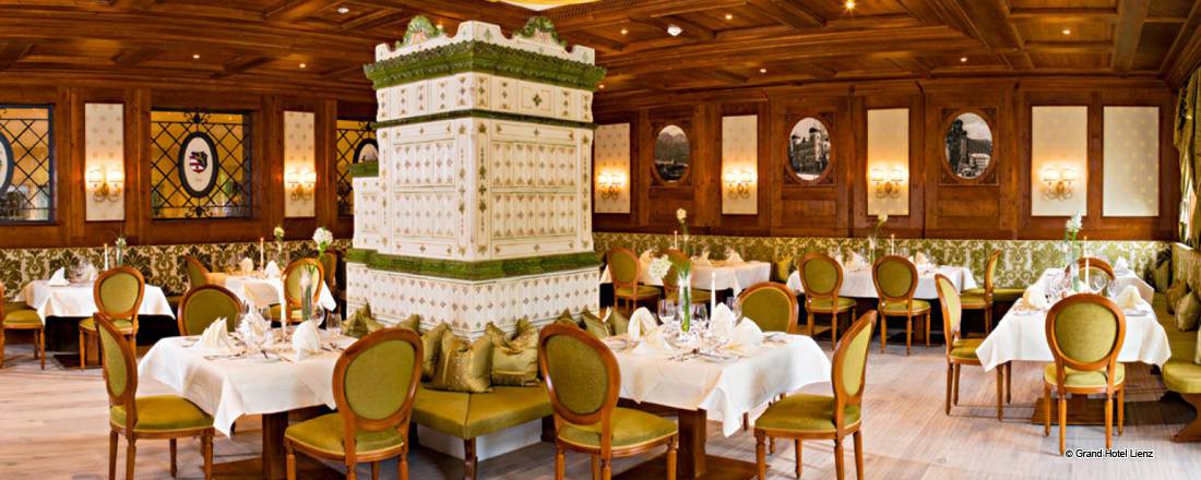Im 5 Sterne Grandhotel Lienz können Sie sich auf verschiedenste Arten kulinarisch verwöhnen lassen. Höchster Genuss und köstlicher Geschmack sind selbstverständlich - in jedem unserer fünf individuell gestalteten Restaurants und Stuben erwartet Sie Kulinarik vom Feinsten. Großzügige Romantik-Terrassen mit herrlichem Blick auf die Isel, ein gepflegter Kamin Salon und eine elegante Lounge bieten für jede Tageszeit & Vorliebe die stimmige Kulisse und das perfekt passende Angebot für Feinschmecker!