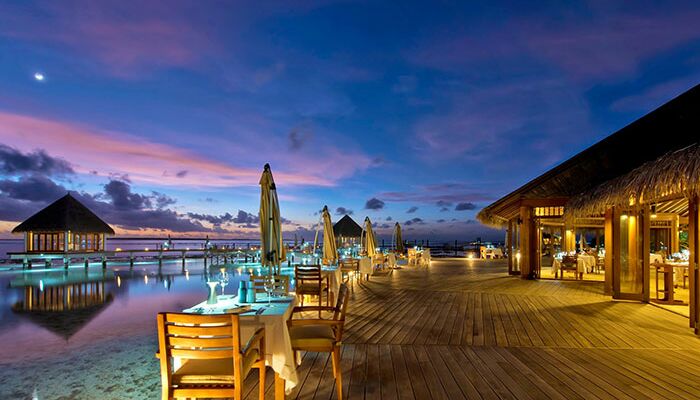 Und einen besonderen Zauber erhält Ihr Abendessen, wenn Sie draußen auf der Terrasse, direkt über der Lagune und unter freiem Sternenhimmel speisen. Für ein ultimativ romantisches Abendessen empfehlen wir Ihnen die Buchung von einem der beiden privaten Pavillons, die sich auf Stelzen in der Lagune befinden.