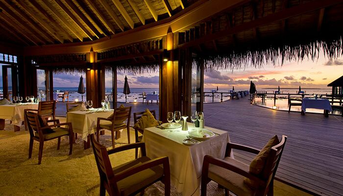 Meeru Bar & Grill bietet Ihnen entspannte Atmosphäre beim Pool und ist der perfekte Treffpunkt, um Ihren Urlaubstag im Paradies entspannt ausklingen zu lassen. Handgemachte Pizzen werden im Holzofen gebacken, die besten Fleischstücke knusprig gegrillt und auf einem heißen Stein werden fangfrischer Hummer und Meeresfrüchte zubereitet. Genießen Sie Ihr Abendessen am Besten draußen auf der Terrasse, von wo aus Sie einen wunderbaren Blick über die Lagune haben und Stachelrochen und Babyhaie beobachten können.