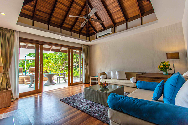 Die Ocean Villa mit zwei Schlafzimmern und Pool im Hideaway Beach Resort & Spa auf den Malediven ist Ihre ganz persönliches Refugium für die ganze Familie.