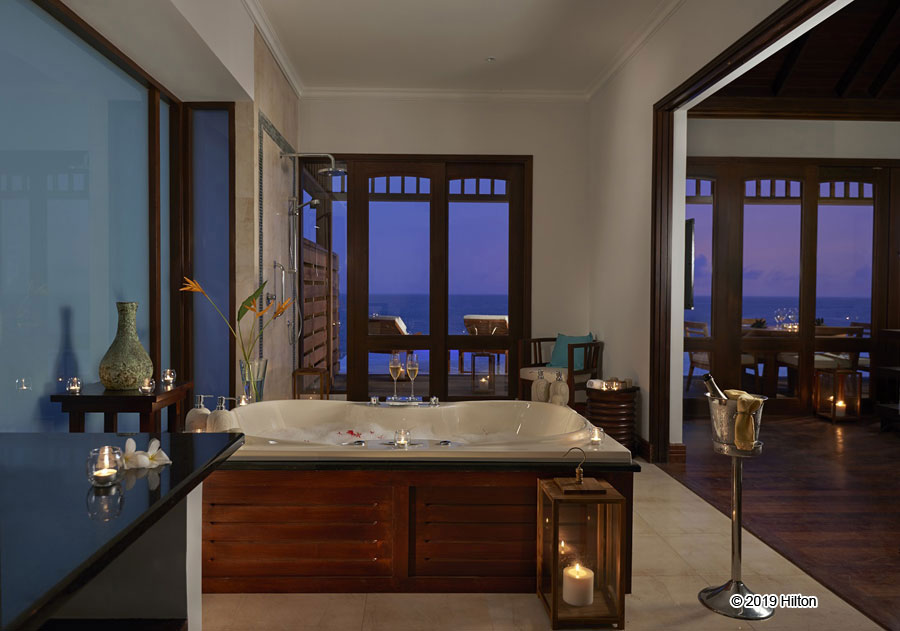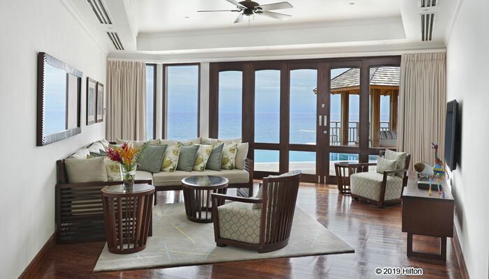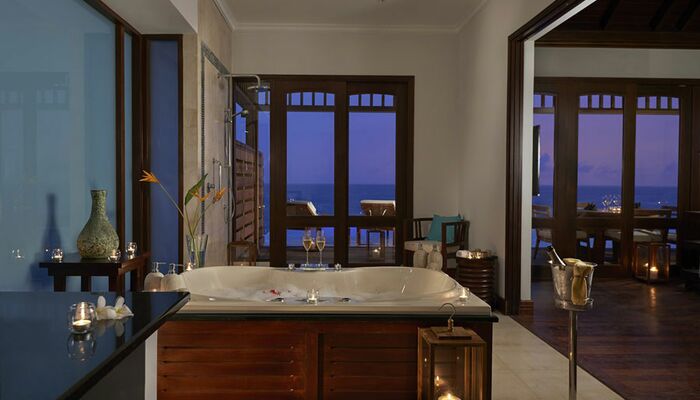 Genießen Sie den herrlichen Ausblick auf den Indischen Ozean vom großen Balkon dieser geräumigen, 350 m² großen Suite mit zwei Schlafzimmern. Ziehen Sie in Ihrem privaten Swimmingpool Bahnen, spannen Sie im Whirlpool aus oder entspannen Sie sich auf dem Sofa vor dem 42-Zoll Fernseher.