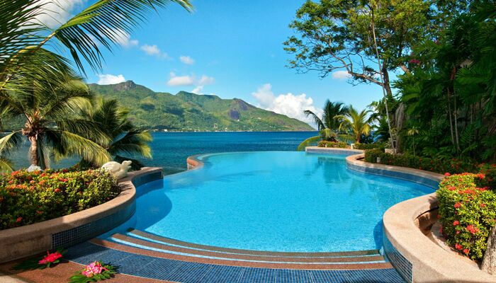 Ihr im Villenstil gebautes 5-Sterne-Hotel befindet sich am leichten Hang der Beau Vallon Bay. Geniessen Sie einen spektakulären Blick auf das turkisfarbene Meer.