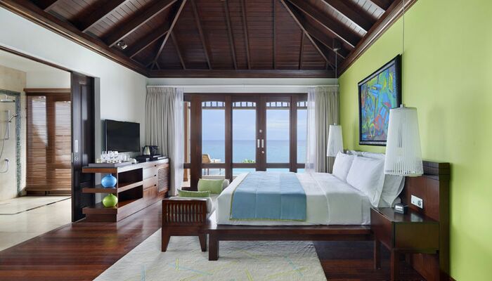 Entfliehen Sie dem Alltag in dieser 90 m² großen Villa, die hoch über der saftig grünen Vegetation des Regenwalds ragt und traumhaften Ausblick auf den Indischen Ozean bietet. Entspannen Sie sich im Whirlpool, erfrischen Sie sich im eleganten Badezimmer mit großer begehbarer Dusche und separater Badewanne oder machen Sie es sich einfach in Ihrem King-Size-Bett bequem und genießen Sie den Ausblick auf den Ozean.
