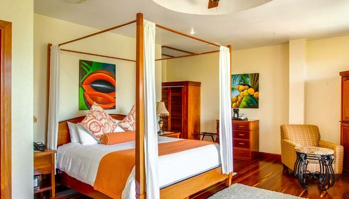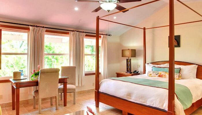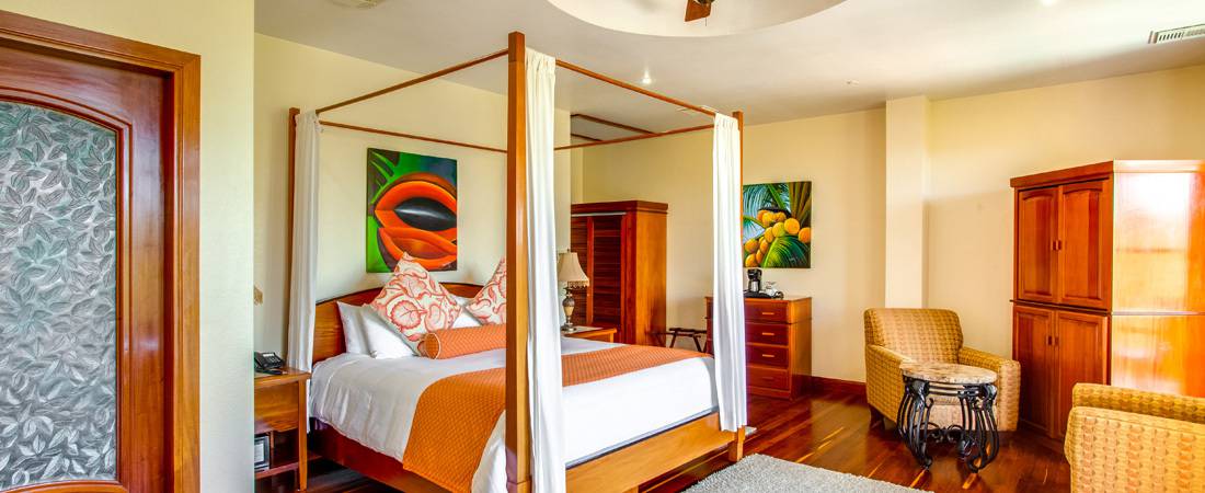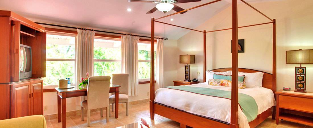 Die Zimmer sind mit lokalen Gemälden, nachhaltigem Mahagoni und exotischen Holzmöbeln aus Belize ausgestattet