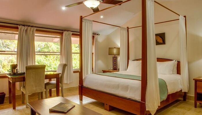 Die Familiensuite ist der ideale private Rahmen für Familien oder Gruppen, die die Ruhe des Belize-Dschungels genießen möchten. Die Suite befindet sich neben dem Pool und der Sonnenterrasse des Resorts und verfügt über einen Sitzbereich mit einer ausziehbaren Couch und ein Schlafzimmer mit einem Queensize-Bett und einem Doppelbett. Dieses Zimmer bietet auch die größte Terrasse des Hotels mit Panoramablick auf tropische Blumen und Regenwälder. Im Wesentlichen ist es ein Rückzug innerhalb eines Rückzugs.