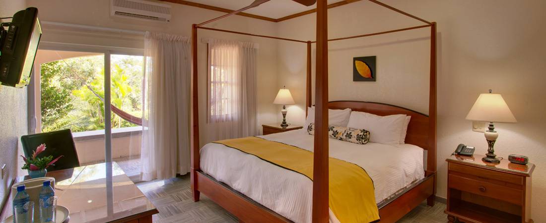 Die Gartenzimmer des San Ignacio Resort Hotel bieten eine entspannte Atmosphäre. Diese Zimmer verfügen über eine Terrasse mit Blick auf einen Garten. Hier können Sie sich in unseren Hängematten zurücklehnen und die Aussicht auf tropische Blumen sowie eine Vielzahl tropischer Vögel genießen - einschließlich des offiziellen Belize-Vogels, des Kiel-Tukan.