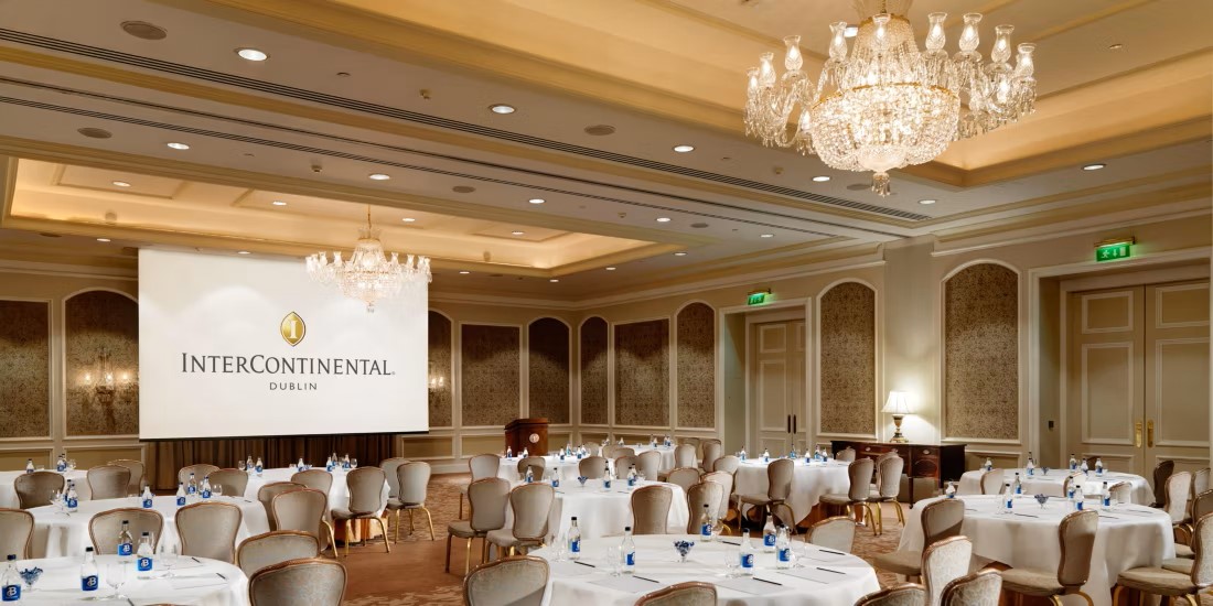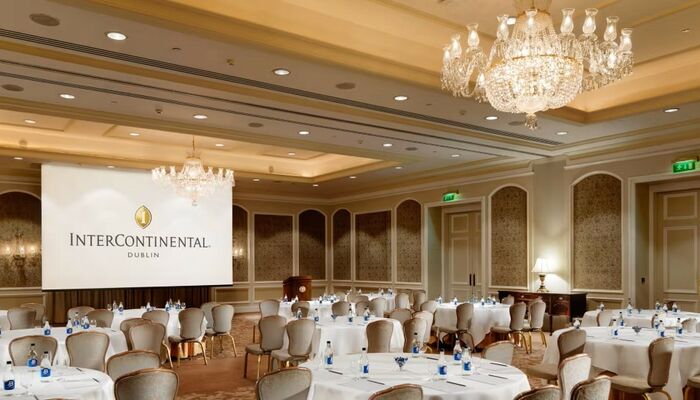 Das als Business-Hotel des Jahres 2021 ausgezeichnete InterContinental Dublin bietet den anspruchsvollsten Veranstaltungsort der Stadt für High-Tech-Events. Wir sind das einzige Fünf-Sterne-Hotel mit zwei Ballsälen und vier angrenzenden Tagungsräumen mit einer Kapazität für bis zu 600 Gäste.