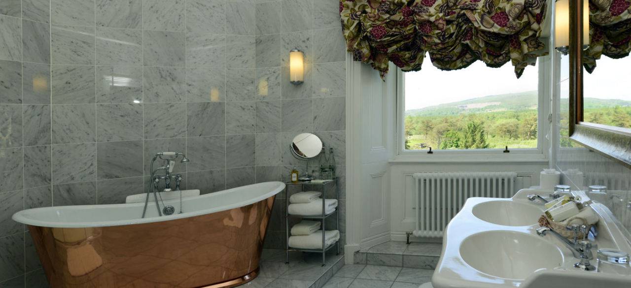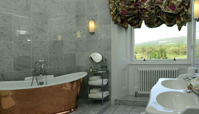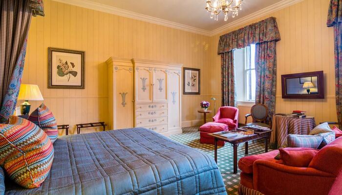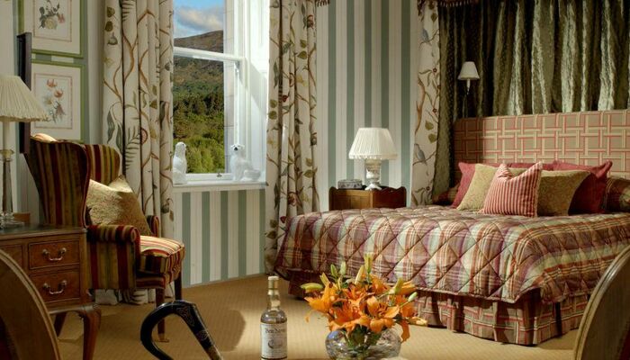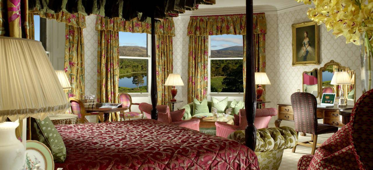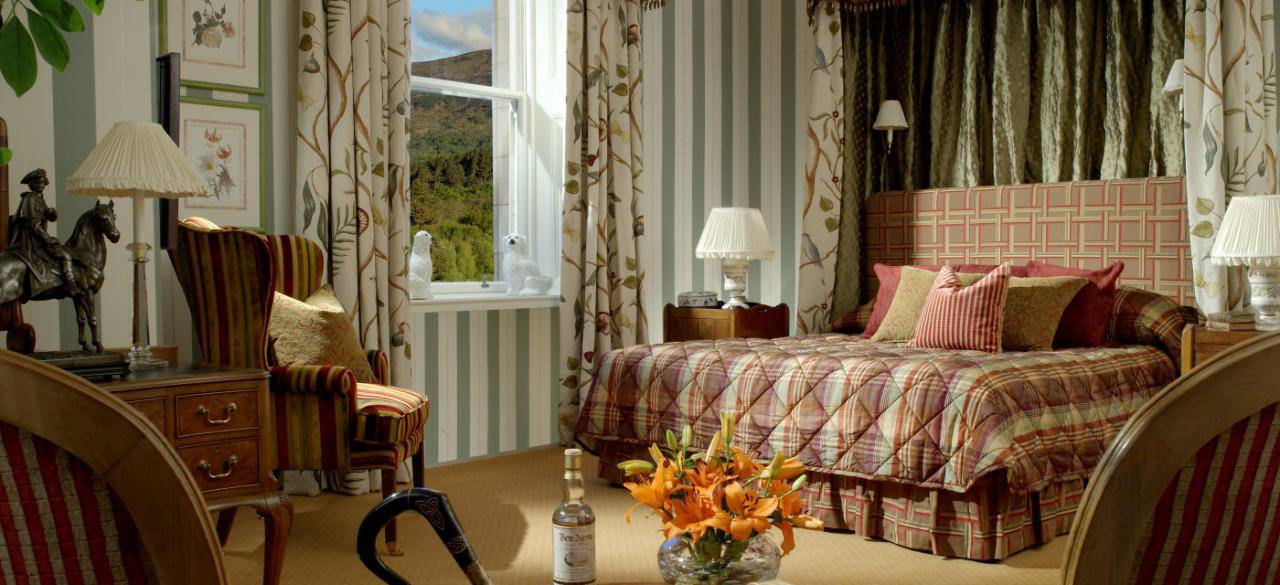 Zur Zimmerausstattung gehören 40 „Fernseher alle verkleidet als Spiegel, persönlicher Safe, Radio, kostenloser Internetzugang und DVD-Player auf Anfrage erhältlich. Alle Zimmer verfügen über luxuriöse Peter Reed 400 Fadenzahl Ägyptische Baumwollbettwäsche und Inverlochy Castle‘s maßgeschneiderte Palette von Arran Aromatics Toiletries.