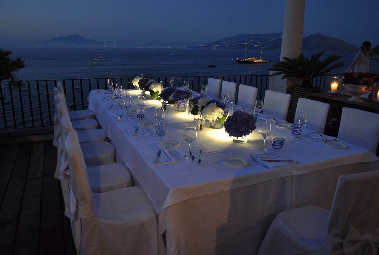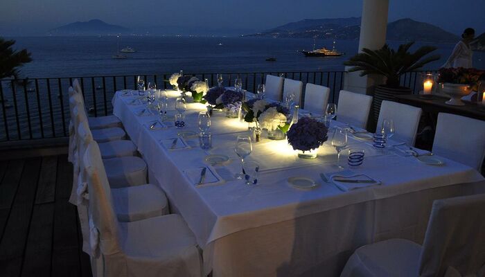 Die Suite besteht aus zwei aneinander grenzenden Penthouse-Zimmern. Zwei Schlafzimmer mit doppeltem Privatbad. Großzügige Privatterrasse mit Sonnenliegen, Sesseln und Tisch. Zauberhafter Blick auf den Golf von Neapel. Ausgestattet mit dem modernsten Komfort: LCD-Fernseher, DVD-Player, Minibar, WiFi-Internetzugang, Klimaanlage, Schrankkabine, Tresor, Begrüßungsset JK.