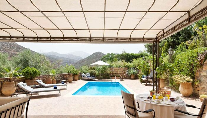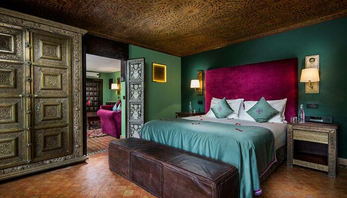 Diese Miniaturversion der Kasbah bietet eine unendliche Aussicht und verfügt über drei spezielle Räume, die normalerweise zusammen gebucht werden. Es hat auch eine große Terrasse und einen privaten Pool. Das Gebäude selbst ist reich an architektonischen Details und bietet absolute Privatsphäre. Innerhalb der Master Suite befinden sich ein Deluxe Zimmer und eine Deluxe Suite auf der unteren Ebene mit privatem Pool und Zimmern, die miteinander verbunden werden können. In der oberen Etage befindet sich ein Superior Zimmer mit riesiger Dachterrasse. Die Master Suite ist perfekt für eine größere Gruppe oder für diejenigen, die eine echte Flucht suchen.