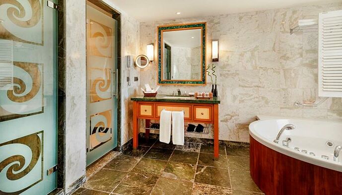 Diese luxuriösen Suiten sind mit einem eigenen begehbaren Balkon oder einer Terrasse mit Meerblick, 2 Badezimmern - 1 mit Whirlpool und Dusche, 1 mit Dusche - und separatem WC, Klimaanlage, stilvollem Deckenventilator, LED-Sat-TV und Telefon, Minibar, ausgestattet. Zimmersafe, Haartrockner, Espressomaschine, Auswahl an Kissen, Pflegeprodukte von Salvatore Ferragamo. Minibar-Erfrischungsgetränke werden in den Suiten mit einem Schlafzimmer kostenlos angeboten.