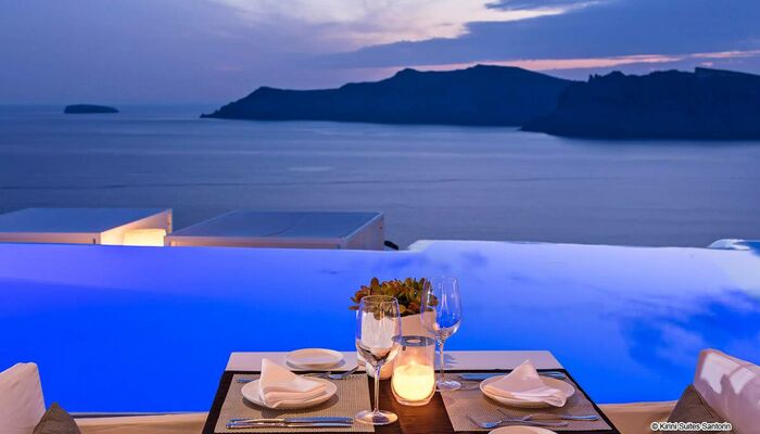 Kirini Suites in Santorini bietet die perfekte Luxus-Hotel Einrichtungen und Dienstleistungen, um eine romantische Kulisse für eine verträumte Hochzeit in Santorini, ein glanzvolles Jubiläum oder sogar Abendessen Veranstaltungen zu schaffen. Mit seiner einzigartigen Gourmet-Küche und seinem hervorragenden Service ist garantiert, dass alles, was Sie planen, ein sofortiger Erfolg wird.