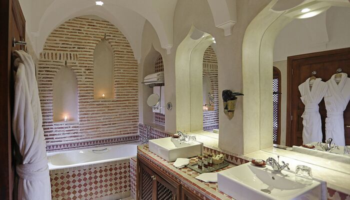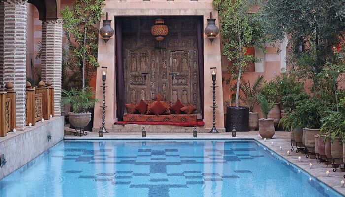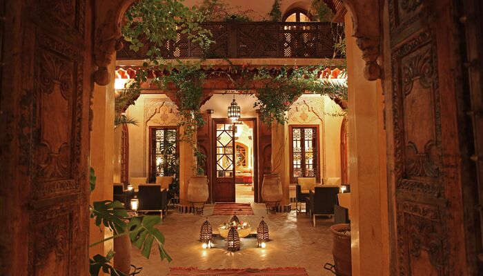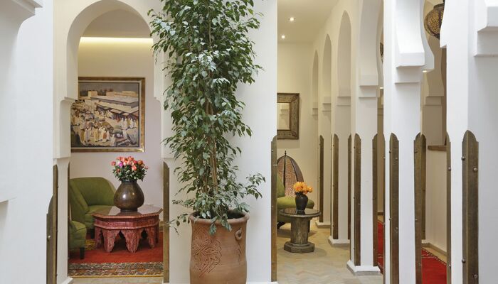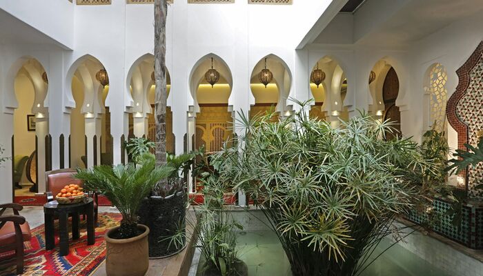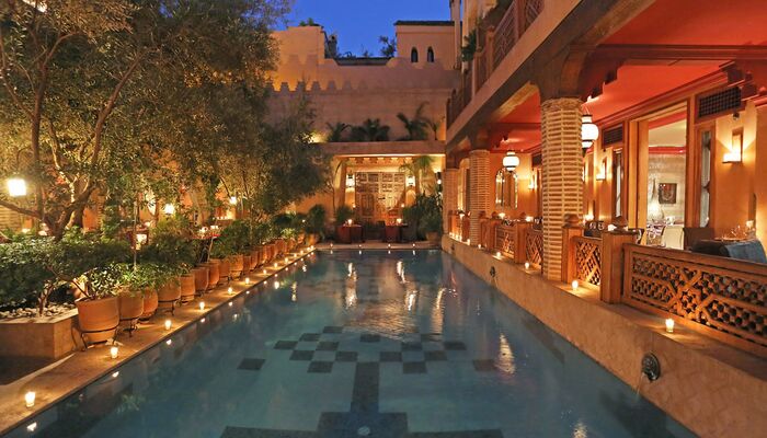 Nur einen kurzen Spaziergang vom Platz Jemaa el Fna entfernt, einem UNESCO-Weltkulturerbe, ist dieses intime 37-Zimmer-Refugium eine Legende für sich – in den 1940er Jahren von dem französischen Mutter-Tochter-Paar Suzy und Helene Sebillon-Larochette als erstes für Ausländer geöffnetes Restaurant in der Medina gegründet und in den 1990er Jahren vom italienischen Aristokraten Graf Fabrizio Ruspoli liebevoll restauriert, um das erste Boutique-Riad-Hotel in Marrakesch zu werden.