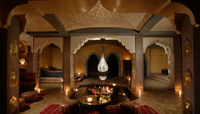 Marrakech Spa Resort Wellness Hotel Marokko Das Spa im La Maison Arabe ist ein Tempel der Verjüngung in einer spektakulären maurischen Umgebung und bietet eine große Auswahl an traditionellen und modernen Behandlungen. Fühlen Sie sich wie auf einer Wolke des Wohlbefindens in den beiden Hammams (Dampfbädern) des Spas davonschweben, einem uralten Baderitual, das reinigt und beruhigt. Erleben Sie die revitalisierende Wirkung einer traditionellen marokkanischen Massage mit natürlichen, einheimischen Produkten. Schönheitsbehandlungen wie Gesichtsbehandlungen, Maniküre und Pediküre sind ebenfalls verfügbar und werden Sie rundum verwöhnen.