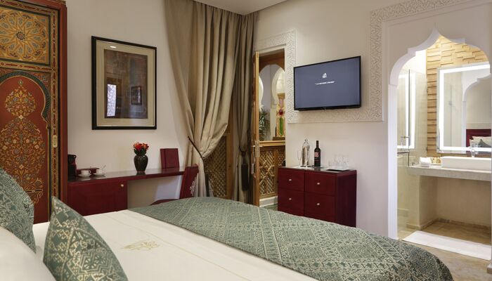 Die 45 Kingsize-Zimmer und Suiten von La Maison Arabe sind charmante Oasen des Komforts und der Eleganz. Die Zimmer liegen um den Innenhof oder auf der Gartenseite des Hotels oder in der Privatsphäre der angrenzenden Douiria- und Pasha-Residenzen. Jedes Zimmer ist einzigartig in Grundriss und Design und verbindet zeitgenössische Eleganz mit marokkanischen Dekorationselementen. Die meisten verfügen über einen Kamin und einen privaten Balkon oder eine Terrasse, auf der Sie einen Drink unter den Sternen genießen können. Die Badezimmer sind aus marokkanischem Marmor und Granit gefertigt und bieten Ihnen höchsten Luxus.