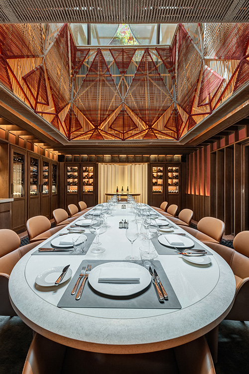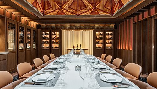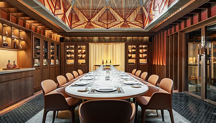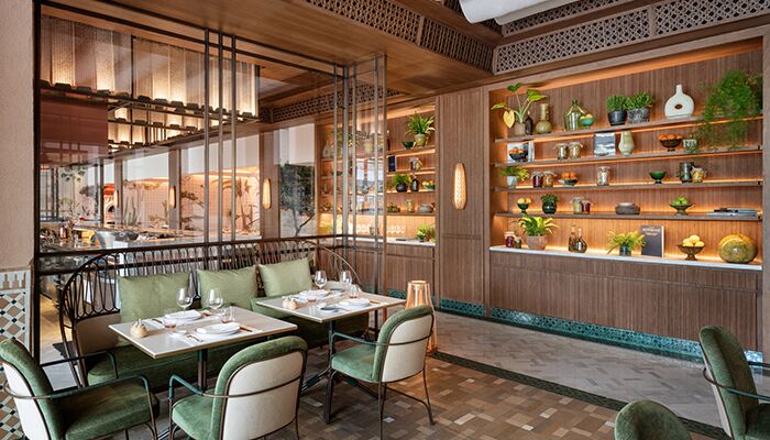 In einer geselligen und eleganten Atmosphäre erfindet Küchenchef Jean-Georges Vongerichten die Luxus-Trattoria neu, indem er verschiedene Zonen für die Zubereitung von Speisen in den Essbereich integriert.