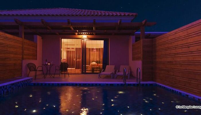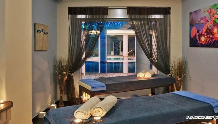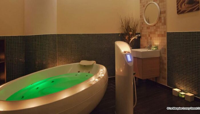 Die unglaublich und einzigartig freistehenden zweistöckigen Villen mit Blick auf die gesamte Anlage und das Meer, bieten modernes Design mit Komfort. Privat auf der höchsten und ruhigsten Gegenden des Komplexes, sind La Marquise Villen von einem mediterranen Garten mit süßen und sanften Farben umschlossen, in 140 Quadratmeter purer Luxus und Ruhe zusammen mit einem privaten Swimmingpool im Freien umgeben. Obere Teil: Ein Schlafzimmer mit Ankleideraum, großzügiges Bad mit Jacuzzi-Badewanne und separater Jet Duschkabine. Untere Etage: Ein zweites Schlafzimmer mit einem Luxus-Badezimmer, eine Essecke und eine luftige Wohnbereich, führt zu einer exklusiven Terrasse und einen privaten Swimmingpool hin.