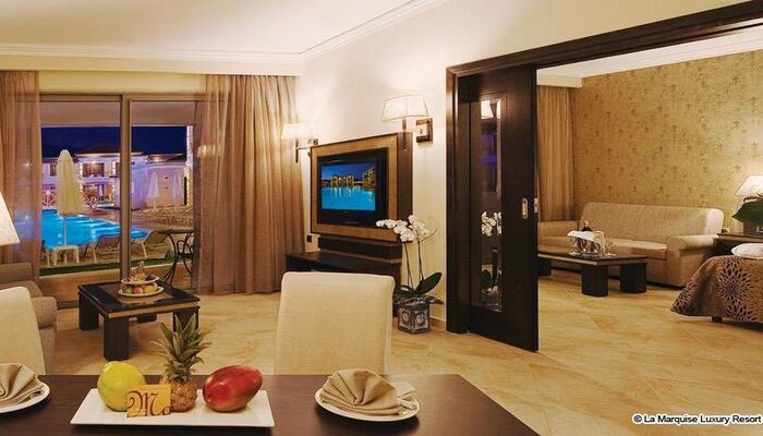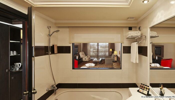 Die außergewöhnlichsten, La Marquise einzigartiges Juwel, strahlt ein Gefühl der ultimativen Luxus aus durch sein modernes Design und Ausstattung. Es liegt auf der 2. Etage des Hauptgebäudes, im Herzen des Hotels und in der Nähe von allen Dienstleistungen, ist mit Stolz als ein ideales Angebot für Unternehmen und private Unterhaltung präsentiert. Aufspannend unter 200qm, die Präsidenten-Suite besteht aus: Ein Schlafzimmer, konstruiert Ankleideraum zusammen mit einer großartige Badezimmer mit Jacuzzi Badewanne, separater Jet Duschkabine und WC. Ein zweites Schlafzimmer mit zwei beigetreten Einzelbetten und eine Sitzecke, ein Wohnzimmer mit gemütlichem Wohnbereich mit einer beeindruckenden privaten Bar-Ecke und einem eleganten Essbereich mit einem Serviceraum, ein voll ausgestattetes Business Office mit Laptop, Faxgerät und Drucker, zwei Gästebäder, Direktwahl-Telefon, im Zimmer Entertainment System mit 42` & 37` LCD TVs, Multi-Channel-TV mit Satellitenempfang, sowie Video on Demand mit einer Größen Auswahl an Filmen, elektronischer Safe, aufgefüllte Minibar, Individuell regulierbare Klimaanlage, Schreibtisch mit Computer oder Laptop Ausstattung, Bademäntel und Hausschuhe, Vergrößerungsspiegel, Föhn, Kosmetik Markenartikeln.