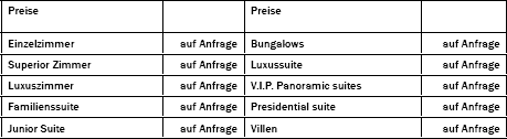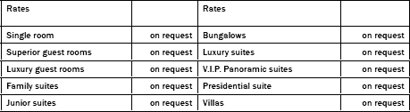Mit dem zuvorkommend Service und prompte Aufmerksamkeit für jedes Detail, bieten unsere 386 Zimmern und Suiten eine harmonische Atmosphäre, absolute Privatsphäre, Ruhe, geben Ihnen die Möglichkeit Ihre Traum Urlaub zu genießen.