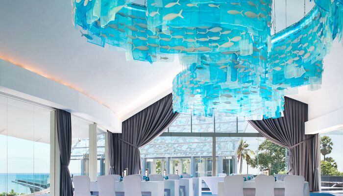 In unserem einzigartigen Restaurant Bamboo Chic erwartet Sie eine kreative kulinarische Reise durch die asiatische und balinesische Küche. Das Restaurant selbst ist offen und hell und bietet sowohl Gemeinschafts- als auch Einzeltische und große Fenster, durch die Sie das Resort und den Pool betrachten können. Eine Kombination unerwarteter Strukturen und hellbunter Akzente eröffnet neue Blickwinkel, während die offene Küche mit Aromen authentischer Gerichte aus lokal angebauten Zutaten und frischen Meeresfrüchten lockt.