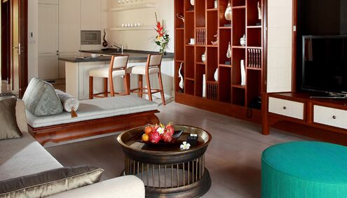 Die geräumigen 2-Zimmer-Pool-Villen mit einer Fläche von 457 Quadratmeter verfügen über eine gut ausgestattete Küchenzeile mit modernstem Elektroherd, Weinkabinett, Kühlschrank und Kaffee- und Teekocher. Der Esstisch ist mit dem feinsten Porzellan, Glaswaren und Geschirr geschmückt, um eine angenehme Speisemöglichkeit in der Villa zu gewährleisten. Das Wohnzimmer mit seiner raffinierten Einrichtung schafft eine gemütliche und gemütliche Atmosphäre und eignet sich hervorragend für entspannte Abende vor einem riesigen 46-Zoll-LED-TV. Die Villa Sala ist ideal für private Grillabende am Pool.