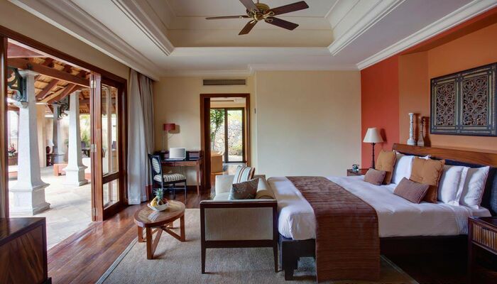 Das Resort mit Blick auf die Bucht von Tamarin umfasst 65 Villen, zwei Restaurants und Bars, einen Infinity-Pool, ein Sport- und Fitnesscenter, einen Kinderclub, ein Bootshaus und einen Wellnessbereich. Filaos, typisch mauritianische Bäume, bieten schöne Schattenbereiche an den langen Sandstränden. Inspiriert vom indischen Kulturerbe, bietet dieses idyllische Fünf-Sterne-Hotel Mauritius ein einzigartiges Urlaubserlebnis mit privaten Villen und exklusivem Service.