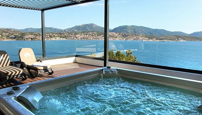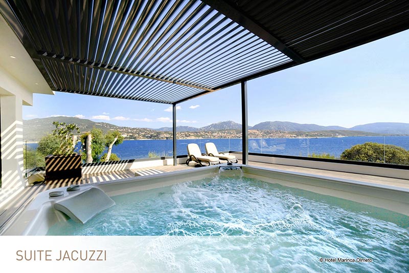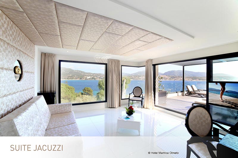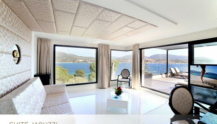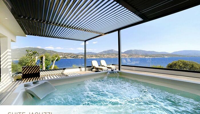 <p>Jacuzzi-Suite<br>Elegantes Dekor<br>120 qm2: (Raum 70qm2 und Terrasse 50qm2)<br>Platz für 4 Erwachsene<br>Kingsize-Bett oder Twin-Betten mit Cocooning-Konzept<br>Großes Wohnzimmer mit ausziehbarer Schlafcouch, TV und Schreibtisch<br>Ein en-suite Badezimmer mit Sternendecke und italienischer Dusche und Badewanne<br>Ein Badezimmer mit Doppelwaschbecken und italienischer Dusche<br>Guerlain ® Annehmlichkeiten<br>Nespresso ® Kaffeemaschine<br>Separates WC<br>Große Terrasse mit privatem Whirlpool und Sonnenliegen</p>