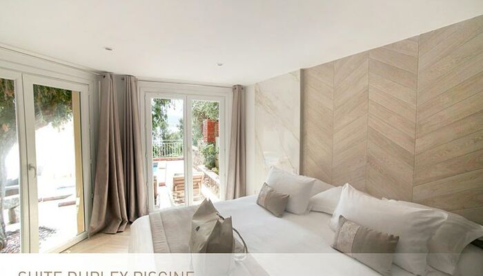 <p>Maisonette-Suite mit Pool<br>Schickes Ambiente mit Holz-Keramik und Marmor, 2019 komplett renoviert<br>Private Suite im Hotelgarten<br>110 qm2: (Raum 45qm2 und 2 Terrassen von 65qm2)<br>Platz für 4 Erwachsene<br>Kingsize-Bett oder Twin-Betten mit Cocooning-Konzept<br>Badezimmer mit freiliegenden Steinwänden, Eckbadewanne, italienischer Dusche und Doppelwaschbecken<br>Guerlain ® Annehmlichkeiten<br>Nespresso ® Kaffeemaschine<br>Separates WC<br>Panoramaterrasse im ersten Stock von 25m2<br>Panoramaterrasse im Erdgeschoss von 40m2 mit privatem beheiztem Pool</p>