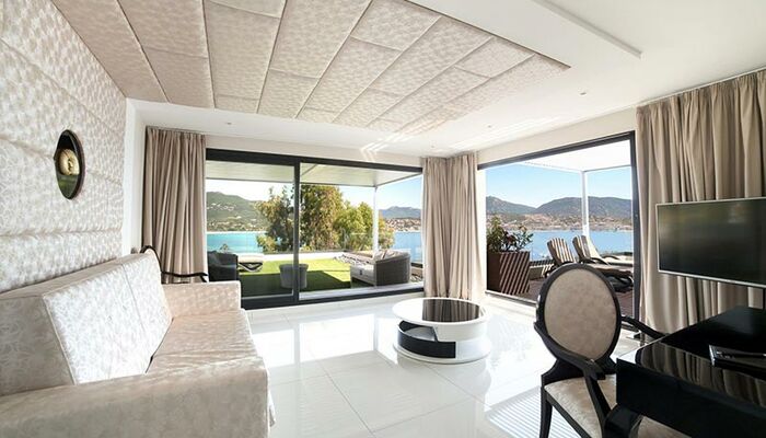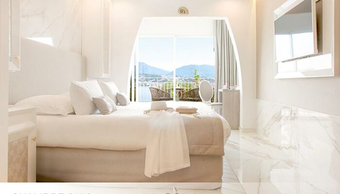 <p>Designzimmer<br>Designatmosphäre<br>Platz für 2 Erwachsene und 2 Kinder (oder Babys)<br>Kingsize-Bett oder Twin-Betten mit Cocooning-Konzept<br>Offenes Badezimmer mit Sternendecke<br>Italienische Dusche und Badewanne<br>Guerlain ® Annehmlichkeiten<br>Nespresso ® Kaffeemaschine<br>Separates WC<br>Meerblick und Balkon</p>