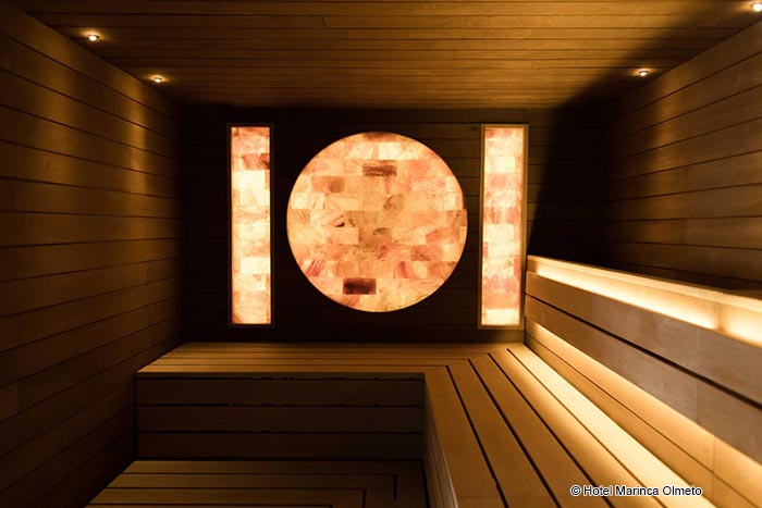 <p>Wellness<br>Entspannen Sie sich im neuen Spa, einem zeitlosen Ort: geformte Türen, ruhiges Dekor... gewidmet Wellness und Entspannung.<br>Spezialbehandlungen, Dampfbad, Innenpool: 1001 Wunder im Marinca Spa mit einer schlichten und eleganten Dekoration.<br>Die Reise beginnt mit einem Hamam mit Eukalyptusduft oder einer Sauna mit einer Himalaya-Salzwand, um dann im Eisraum mit Eiswand und Springbrunnen in nordische Atmosphäre zu gehen. Die Zeremonie kann auf das beheizte Hallenbad ausgedehnt werden, das sich zu einem großen, mit Vegetation geschmückten Solarium mit Meerblick öffnet.<br>Tauchen Sie ein in eine Welt, in der alle Sinne wach sind, erleben Sie für einen Moment die Launen der Natur, einen tropischen Regen, einen Sommersturm oder einen Bergnebel, Sie befinden sich in der Erlebnisdusche.<br>Verliebte können sich zu einer romantischen Dämmerung in einem Jacuzzi-Bad mit Champagner und Erdbeeren treffen.</p>