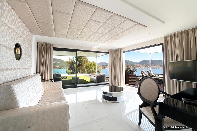 <p>Luxuszimmer und Suiten<br>Das Hotel Marinca*****[&] Spa bietet luxuriöse Zimmer auf zwei Etagen und im Erdgeschoss eines alten korsischen Gebäudes in der Privatdomäne Vitricella. Alle Zimmer und Suiten sind in zwei Dekorationstrends erhältlich: `Design` und `Sub-Holz`.<br>Jacuzzi und Penthouse-Suiten sind mit Außensprudelbädern ausgestattet, die einen Panoramablick über das Meer bieten.<br>Weich und gemütlich sind die Zimmer wahre Kokons des Komforts. Evasion oder Executive, mit großer Terrasse oder ausgestatteter Logia, bieten sie einen Panoramablick über das Meer.<br>Erleben Sie das privilegierte magische Nachterlebnis in der schwimmenden Suite.</p>